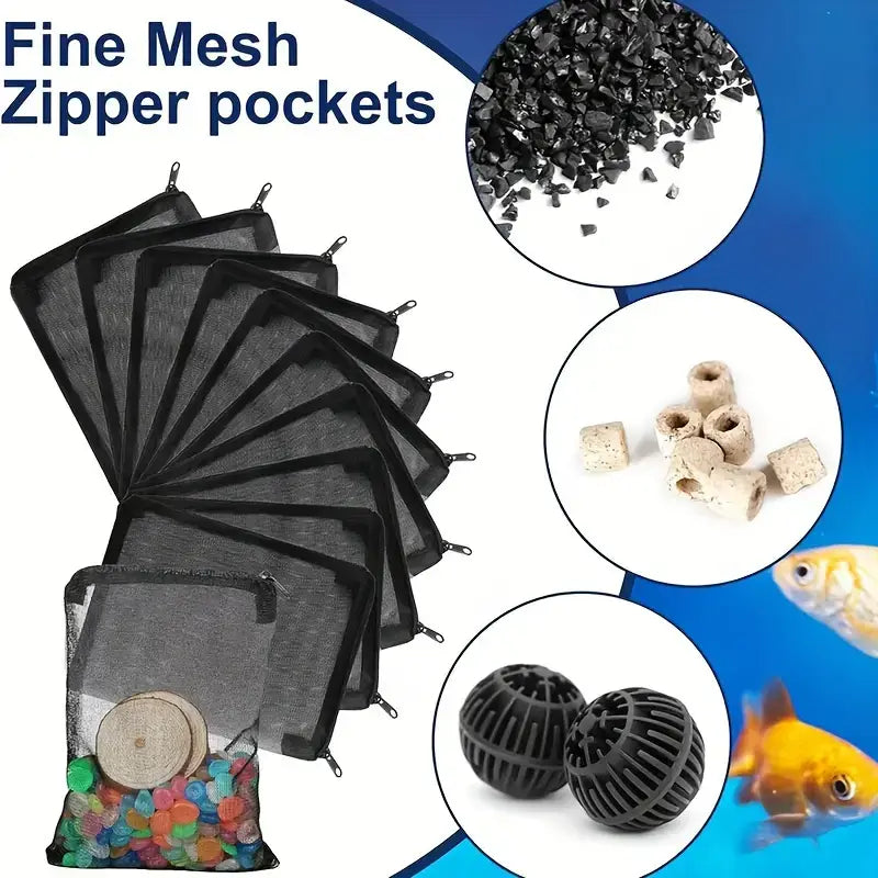 10pcs Aquarium Filter Bags with Zipper, for Activated Carbon, Ceramic Ring And More