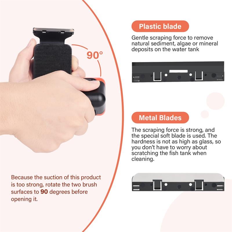 - Magnetic Brush: Strong magnet, size-adaptable, dual-sided cleaning for easy tank care.
