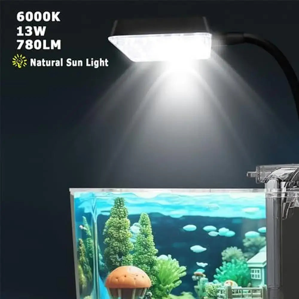 Dazzling LED Lights: Our mini aquarium features a clamp lamp with ample brightness, allowing you to fully appreciate the underwater beauty. The light specifications are AC 110~240v, 13W, 780 Lumens, 6000K.