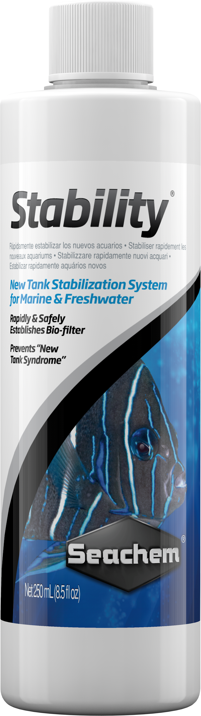 Stability® will rapidly and safely establish the aquarium biofilter in freshwater and marine systems, thereby preventing the #1 cause of fish death: "new tank syndrome". Stability® is formulated specifically for the aquarium and contains a synergistic blend of aerobic, anaerobic, and facultative bacteria which facilitate the breakdown of waste organics, ammonia, nitrite, and nitrate. The bacteria employed by Stability® are non-sulfur fixing and will not produce toxic hydrogen sulfide. Stability® is completely harmless to all aquatic organisms as well as aquatic plants, thus there is no danger of over use.